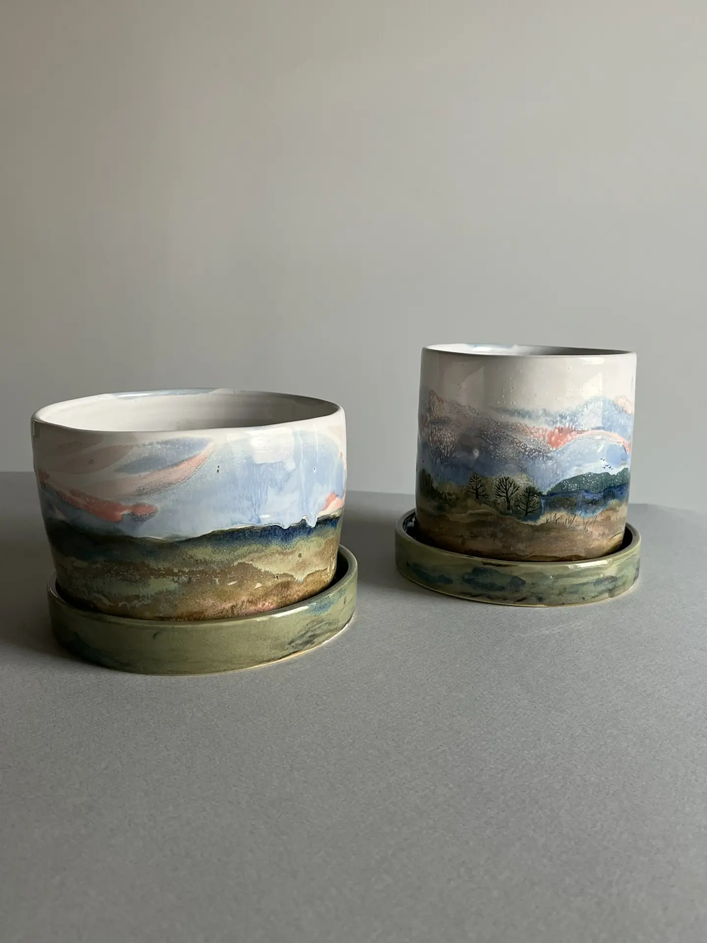 Фон представляет собой зелёные поля, которые плавно переходят в горизонт, где виднеются очертания деревень и холмов. Они напоминают о тесной связи народа с природой, которая питает и вдохновляет его.